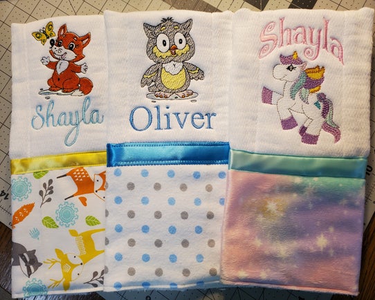 Discover a wide range of embroidered items designed to add a personal touch and timeless charm to your everyday essentials. Choose from our beautifully crafted options, including burp cloths for your little one, plush towels for a touch of luxury, cozy blankets to keep you warm, and adorable tooth fairy pillows to celebrate special childhood moments. Each item is carefully embroidered to bring beauty, durability, and a unique flair to your collection. Whether you're looking for the perfect gift or a personalized addition to your home, our embroidered pieces are crafted to impress and cherish for years to come.